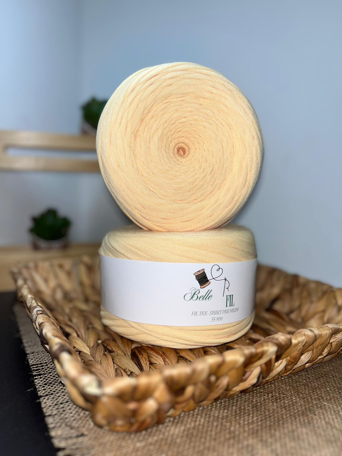 Fil T-shirt jaune pastel 500g,1001m de longueur, 35mm d'épaisseur