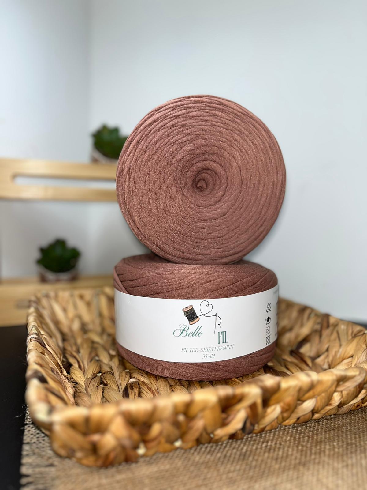 Fil T-shirt marron terre cuite 500g, 100m de longueur,35mm d'épaisseur